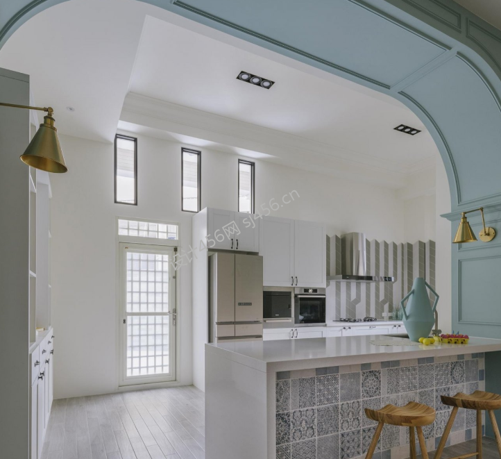 112㎡北欧极简风三居室开放式厨房装修效果图