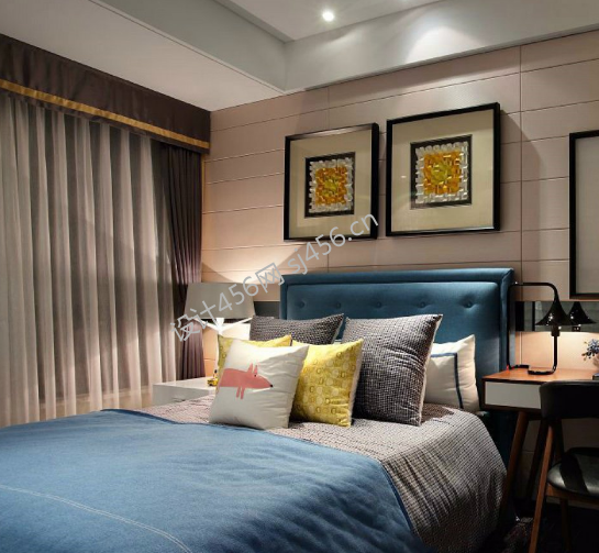 109㎡现代简约风三居室卧室背景墙装修效果图