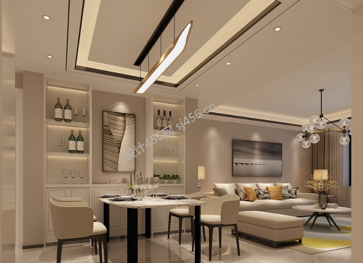 135㎡现代简约风四居室餐厅吊顶装修效果图