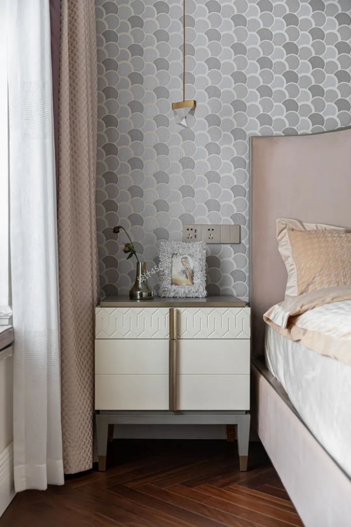 132㎡欧式轻奢三居室卧室背景墙装修效果图