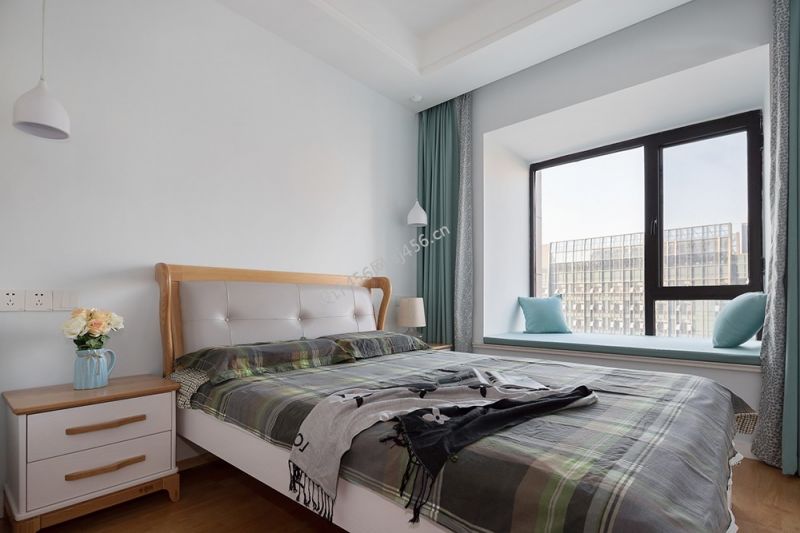 110平现代简约三居室卧室背景墙装修图片