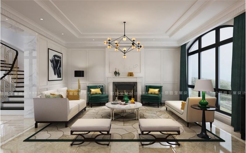 266㎡美式风格别墅客厅沙发墙装修效果图
