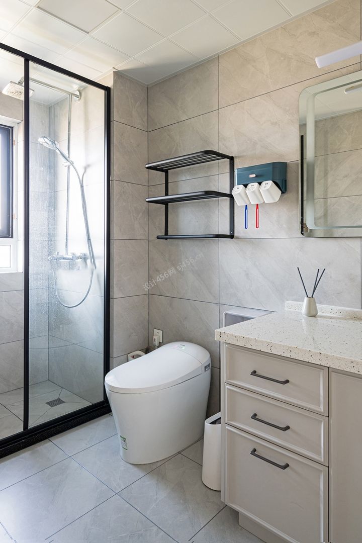109平米现代简约三居室卫生间隔断装修效果图